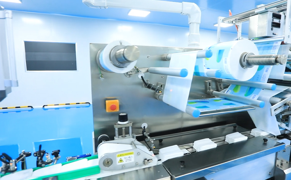 CD-2000H-16L全自動濕巾生產(chǎn)線生產(chǎn)一次性家庭清潔用濕巾或嬰兒濕巾。是由8組原布架1切2帶自動分切,折疊、加藥液、定長度切斷、計數(shù)堆垛、再自動輸送到包裝機(jī)進(jìn)行包裝的機(jī)器。本機(jī)原材料使用不停機(jī)自動換料裝置,減少更換原材料的時間,有效的提高了工作效率,布接頭在線檢測和駁接口在線剔除,增加張力控制與自動糾偏功能。所有過程從原料到包裝成品都在機(jī)器上完成,生產(chǎn)過程快速、衛(wèi)生。主折疊機(jī)與包裝機(jī)可以自動連接使用又能在生產(chǎn)特殊規(guī)格產(chǎn)品時分開獨立使用,能使客戶最大限度利用機(jī)器、產(chǎn)生最大的效益。